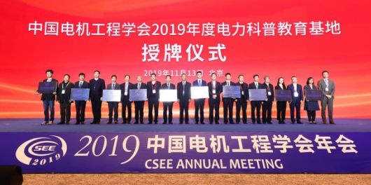 2019年11月13日,2019年中國電機(jī)工程學(xué)會年會在京開幕。作為能源電力領(lǐng)域的行業(yè)盛會,本次會議深入貫徹十九大清潔綠色能源發(fā)展理念,以“清潔能源,智慧電力,美好生活”為主題,邀請了15位院士及140余位專家現(xiàn)場作交流報告,來自政府、國內(nèi)外高校及企業(yè)的2000余人參會交流。開幕式上舉辦了2019年度電力科普教育基地授牌儀式,本年度共26家單位入選。天目湖先進(jìn)儲能技術(shù)研究院作為2019年新入選單位代表,獲“2019年度電力科普教育基地”正式授牌。電力科普教育基地認(rèn)定工作自2013年啟動以來,截至2019年底,全國范圍內(nèi)共命名電力科普教育基地99家。此次,研究院獲授牌,是學(xué)會對研究院在基礎(chǔ)教育、大眾科普等方面工作的肯定,研究院將繼續(xù)發(fā)揮自身優(yōu)勢,主動承擔(dān)社會責(zé)任,切實履行社會義務(wù),為科學(xué)技術(shù)知識宣傳普及工作而奮斗。